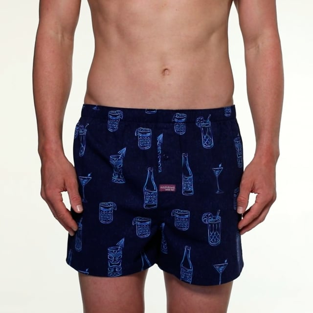 Turn everyday comfort into a mini island getaway with the Mitchdowd Mens Comfort Boxer Shorts 3 Pack. You get three fun designs - neon tiki cocktails in navy, a blue diamond micro‑print, and a colourful tiled tiki pattern - each cut from breathable woven cotton with a relaxed fit and button fly.