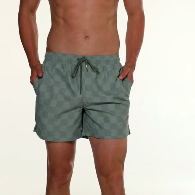 Keep it sleek and effortless with the Mitchdowd In Waves Men's Swim Shorts in Sage Green with Quick Dry Featuring a subtle tonal check pattern in soft sage green, this style brings understated cool to your summer wardrobe. Made from 100% Rrecycled polyester, the lightweight fabric is quick-drying, comfortable, and eco-conscious, designed to move with you from the beach to the bar.