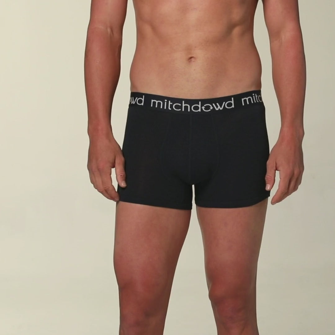 Upgrade your underwear drawer with the best selling Mitchdowd Men’s Bamboo Mid Length Trunks 3-Pack in Black, your everyday style essential. Crafted from super soft bamboo pulp fibre, these men’s bamboo trunks are moisture-wicking, lightweight, and luxuriously soft with a smooth, silk like feel.