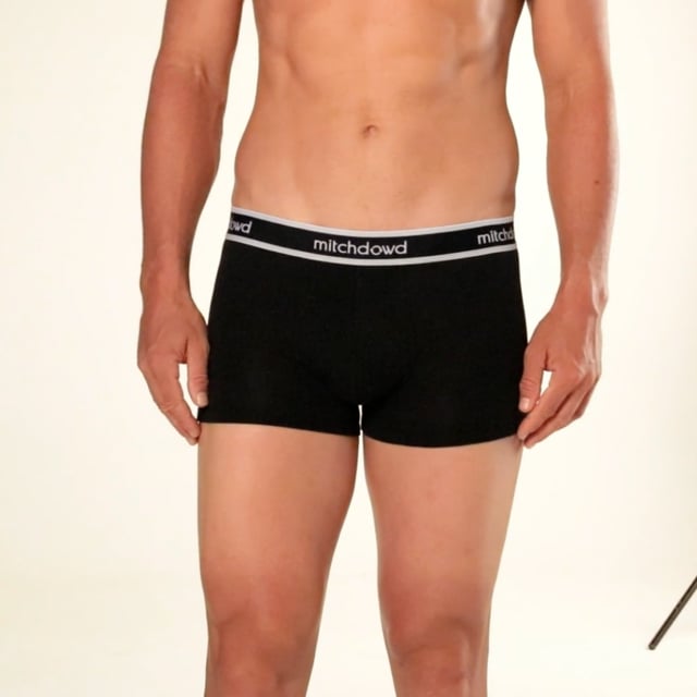 These original Mitch Dowd Mens Plain Cotton Printed Mid-Length Trunk 5 Pack in black provide ultimate comfort all day long. Get hip in our favourite trunk shape with our comfy shorter leg super soft cotton elastane fabric. Featuring binding at the front pouch and leg opening, plus our extra soft jacquard logo waistband. Our mens trunks deliver comfort where it counts - in your pouch! Every pair of our Mitch Dowd underwear range is designed by us here in Melbourne Australia- our quirky fun original designs by our best people. The art of Mitch is in your pants!