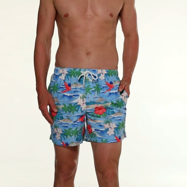 Hit the waves in style with the Mitchdowd Retro Surf Men's Swim Short. Designed with a bold tropical print featuring palm trees, hibiscus flowers, and ocean waves, these swim shorts bring instant holiday vibes to your summer wardrobe. Crafted from quick-drying polyester, they’re perfect for the beach, pool, or laid-back weekends. An elastic waistband with adjustable drawstring ensures a secure fit, while side pockets add everyday practicality.