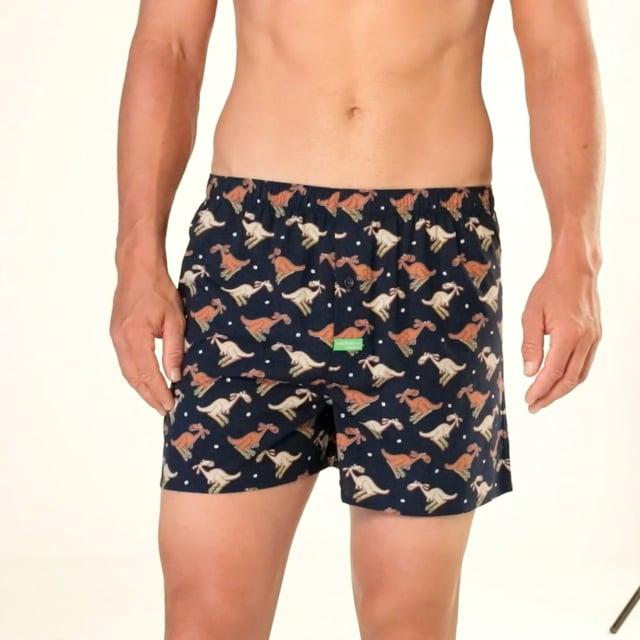 Hop into comfort with the Mitchdowd Men’s Roo Bamboo Boxer Shorts in Navy, featuring a playful all-over print of bouncing kangaroos. Proudly designed in Melbourne, these best selling men’s bamboo boxers bring together fun Aussie style and everyday functionality.