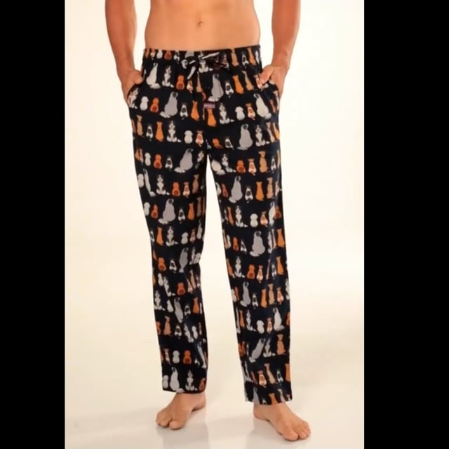 Mens Sit Dog Cotton Flannel Sleep Pant - Navy
