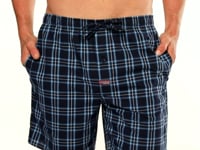 Mitchdowd Men’s Woven Cotton Sleep Shorts - Navy Blue Check