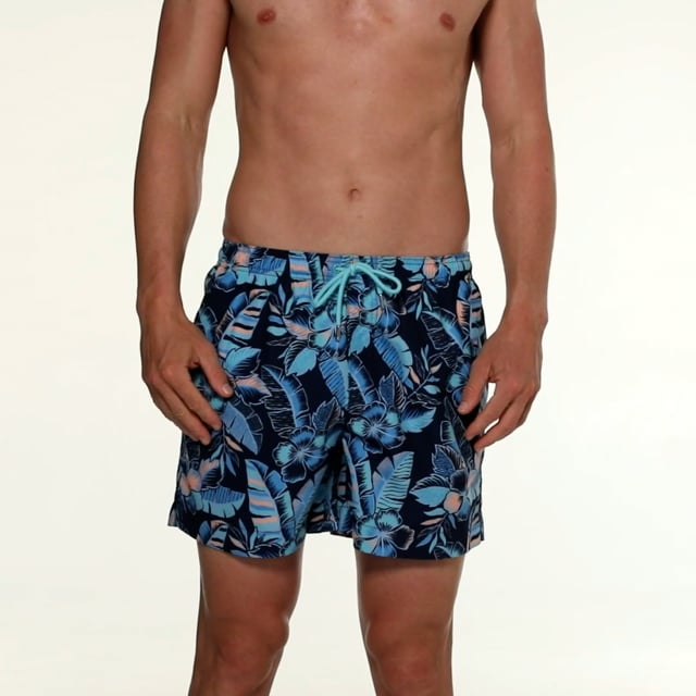 Stand out this summer in the Mitchdowd Men's Pop Tropics Swim Short. Designed with a bold tropical leaf and hibiscus print against a deep navy base, these shorts bring instant holiday energy to your look. Made from 100% REPREVE® recycled polyester, they’re lightweight, quick-drying, and kinder to the planet perfect for beach days, poolside lounging, and laid-back weekends.