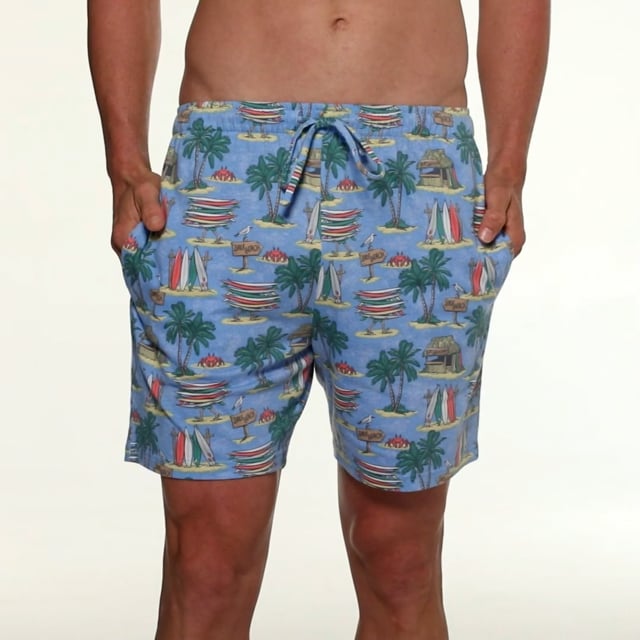 Bring the holiday vibes to bedtime with these Mitchdowd Men’s Tropical Beach Sleep Shorts. Featuring an all-over print of surfboards, palm trees, and beach huts on a breezy blue background, these sleep shorts are designed for comfort and style. The relaxed fit and soft cotton fabric make them perfect for lounging, sleeping, or lazy weekends.