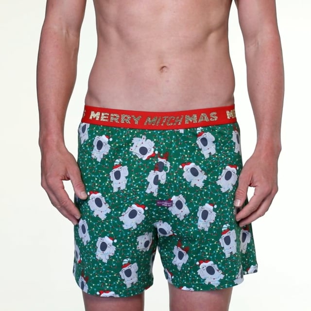 - Comfortable elastic waistband with festive "Merry Mitchmas" branding