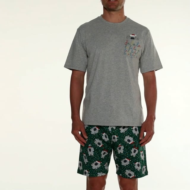 Celebrate the festive season Aussie-style with this Mitchdowd Christmas Koala Men's Pyjama Set! This fun and quirky set features a light grey tee with a printed chest pocket and playful "Fa La La" design, paired with green shorts covered in a cheerful koala-in-Santa-hat print. Crafted from soft, breathable cotton, this set is perfect for staying comfy during warm summer nights while keeping your holiday spirit high. Whether it’s Christmas morning or lounging all December long, this set adds a fun, uniquely Australian touch to your sleepwear.
