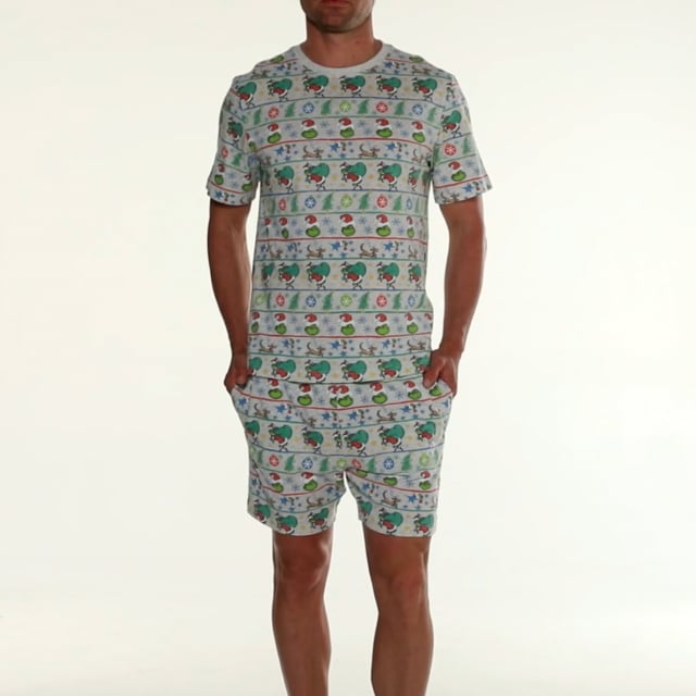 Get ready for a cozy and fun night's sleep with the Mitchdowd Men's Printed Pyjama Set. Featuring a playful and vibrant print inspired by classic holiday characters, this set combines comfort and style effortlessly. Made from soft breathable cotton, the pyjama set includes a short-sleeve top and matching shorts designed to keep you cool and comfortable throughout the night.