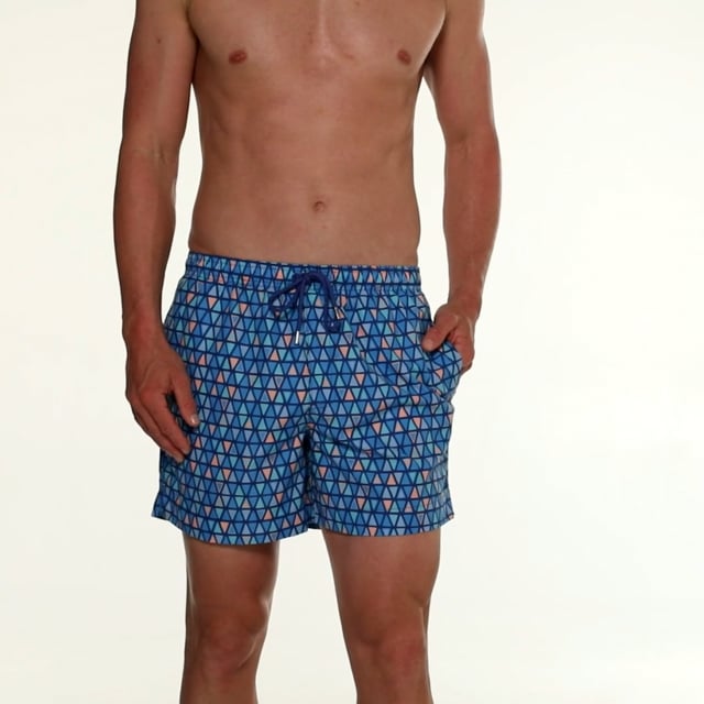Add a splash of colour to your summer wardrobe with the Mitchdowd Ocean Mosaic Blue Men's Swim Shorts. Featuring a bold geometric print in vibrant ocean blues with hints of pink, this style is designed to stand out at the beach or by the pool. Made from 100% REPREVE® recycled polyester, the lightweight fabric is quick-drying, comfortable, and environmentally responsible.
